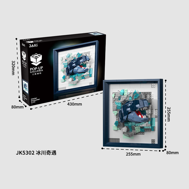 還原寒冷冰川環境,藍色恐龍露出尖銳的鋸齒,張嘴咆哮, 霸氣恐龍,生動再現破墻而出,3D立體設計,兇猛巨獸仿佛破墻而出,生動逼真。