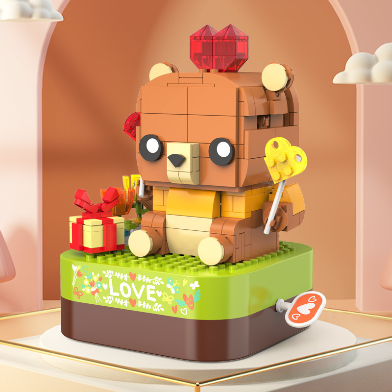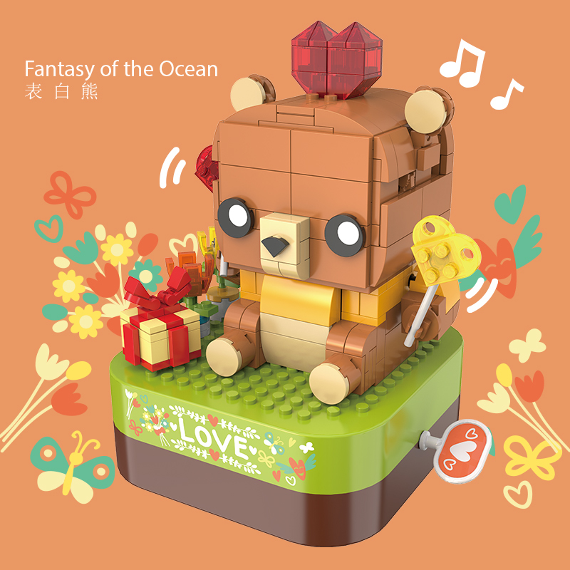 將積木與音樂盒完美結合,好玩又時尚。純機械動力設計更環保,音樂盒發條轉動帶動小熊揮舞手中的棒棒糖,益智拼搭,時尚美觀,還能充當家居精品擺件。